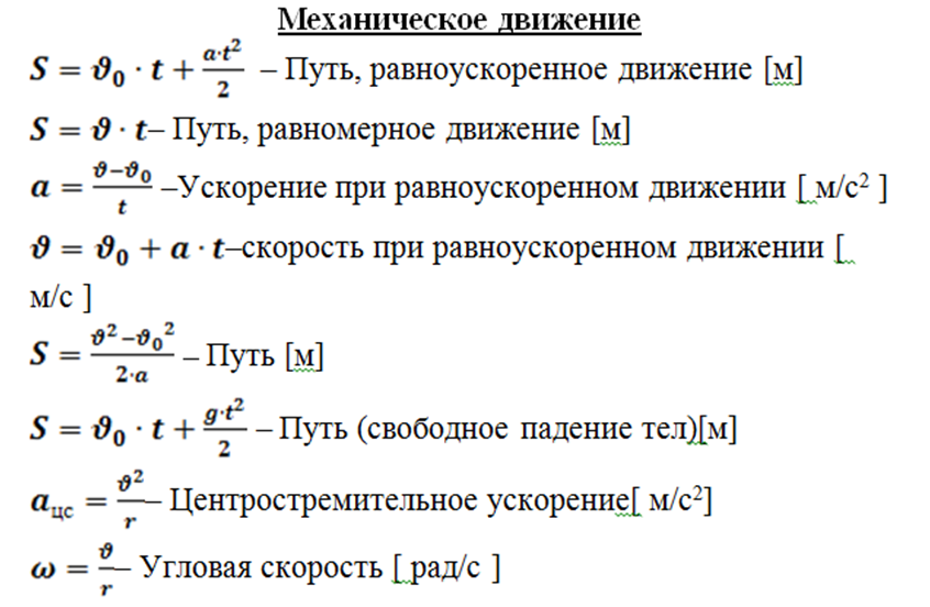 Кинетическая энергия | E – кинетическая энергия (Дж) m – масса (кг) 𝓋 – скорость (м/с) | |